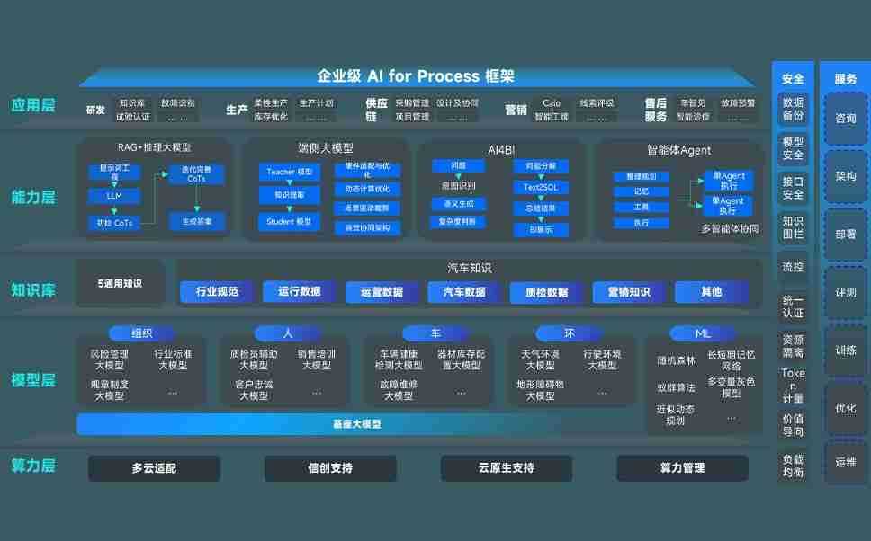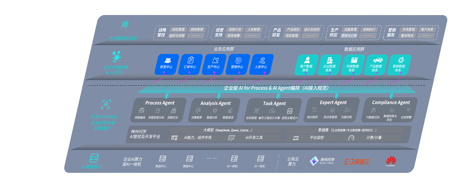 端到端的一站式AI工作空间深度融合了从企业战略规划到日常经营的全流程业务板块,,定向解决车企内部领域多、、、、部门多、、、、链条长、、、场景碎片化等难题,,,,支持车企快速构建以AI为核心的生产力写作体系,,,实现任务执行与AI能力的无缝集成与交互