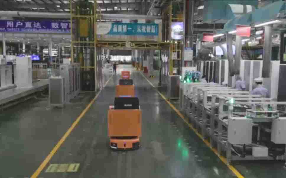 为车载冰箱物流配送打造的智能解决方案,,,包含产中物流通过潜伏举升AMR搬运至线边,,,,产后成品物流智能仓储,,,,流程包含产中物流智能齐套入库,,,,线边安灯叫料AMR智能配送至线边,,,,成品入库、、、、出库,,,,通过无人堆高车机器人,,智能仓储管理替代人工作业管理,,,实现更高存储、、更高效率、、、、更具柔性化的解决方案。。